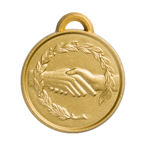 Medaglia rotonda in zama con soggetto stretta di mano.