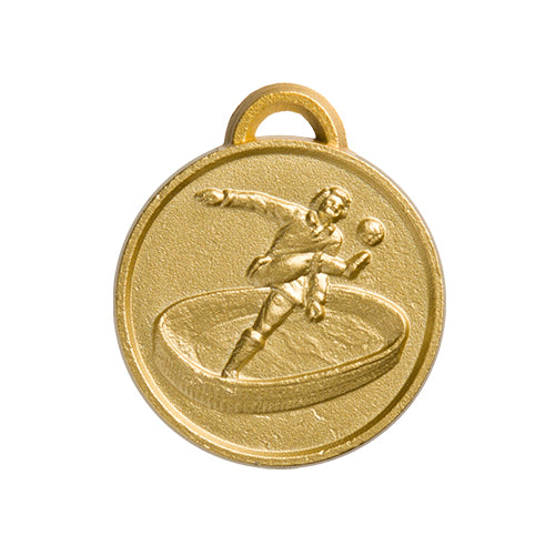 Medaglia rotonda in zama con soggetto calcio.