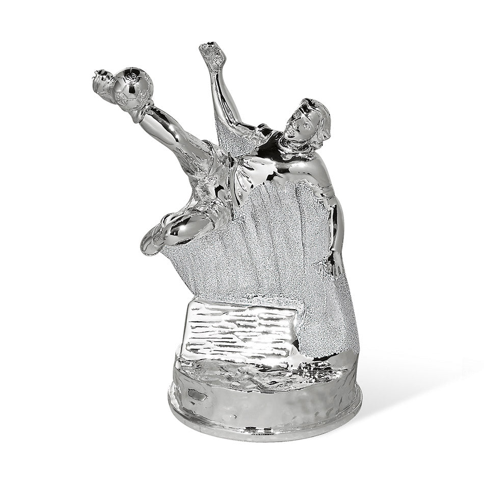 Trofeo calcio per premiazioni sportive in resina. Soggetto calciatore in resina argentata effetto in movimento.
